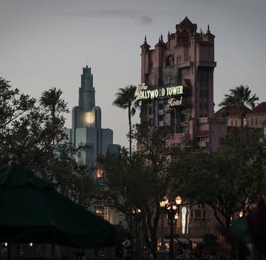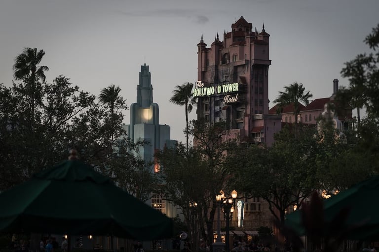 As you approach the foreboding Hollywood Tower Hotel, rain slicks the pavement and darkens the Art Deco facade, making it look even eerier. Inside, the lobby's cobwebs and dusty chandeliers feel extra authentic when you can hear the muffled sound of rain outside.