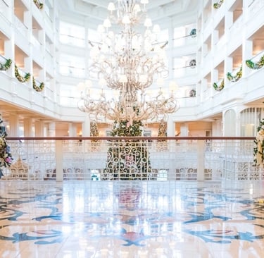 This elegant Deluxe Resort is a gorgeous place to stay year-round, thanks to its Victorian-inspired theming and incredible waterfront location, just across Seven Seas Lagoon from Magic Kingdom. But during the holidays, it's not a relaxing place to stay. Below, I'm sharing why I recommend skipping this stunning resort if you're planning to visit from November to January.